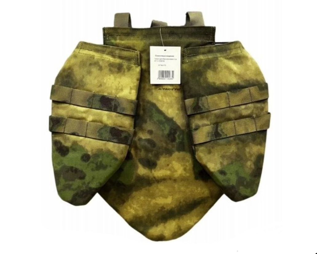 Чехол вместе с баллистикой, засчет своей трехлепестковой формы удобен при стрельбе с колена, обладает большей противоосколочной площадью чем обычный плоский напашник. Ткань с ИК-ремиссией. Боковый лепестки оснащены системой молле, напашник полностью совместим с большинством бронежилетов и плитников. Обладает противоосколочной стойкостью по классу Бр1А - СВМПЭ 25 слоев.